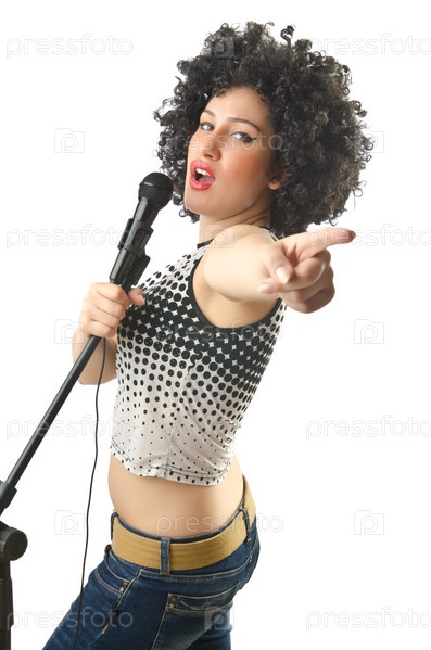 Женщина с афро-стрижкой на белом фоне