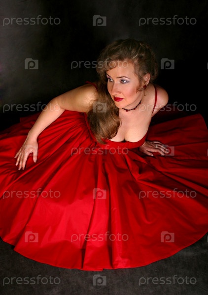 Взрослая женщина в красном платье в студии