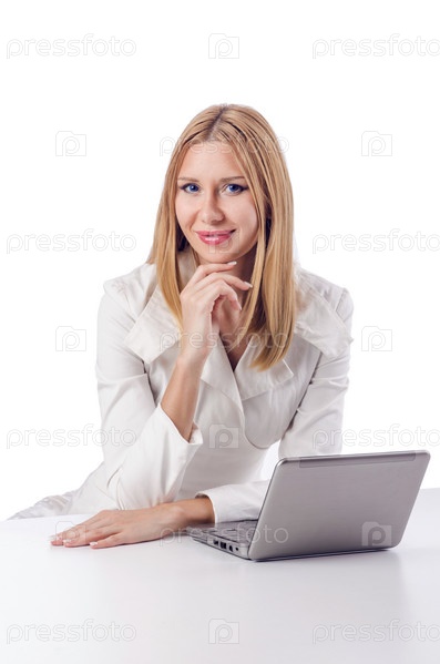 Женщина с ноутбуком на белом фоне