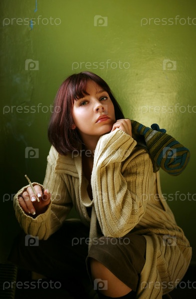 Красивая брюнетка закурила сигарету