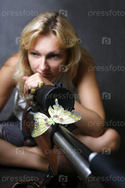 Портрет молодой женщины с винтовкой