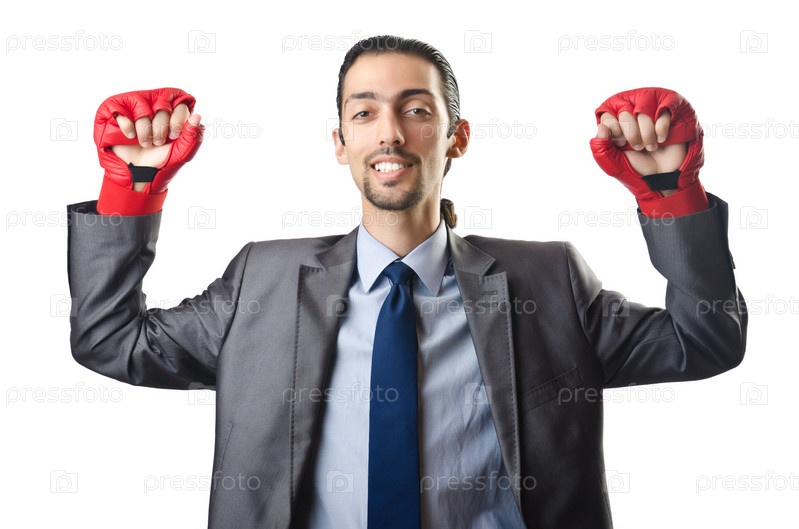 Красивый бизнесмен в боксерских перчатках