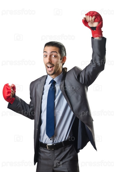 Красивый бизнесмен в боксерских перчатках