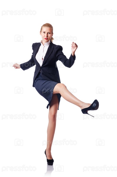 Счастливая бизнес-леди, изолированная на белом