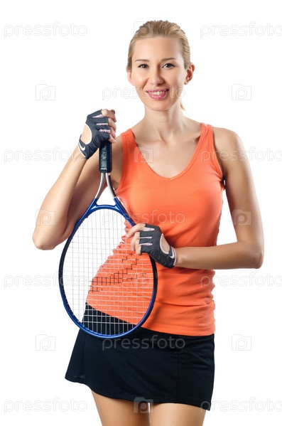 Женщина теннисистка на белом фоне