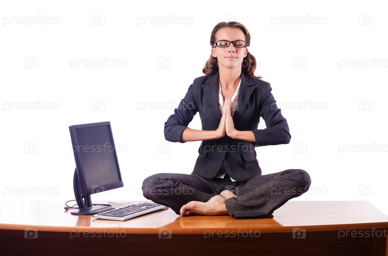 Женщина медитирует на столе