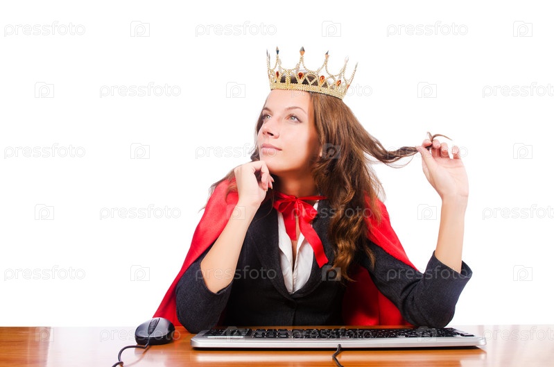 Королева в офисе на белом фоне