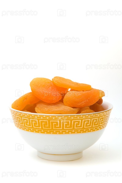 Курага в пиале на белом фоне