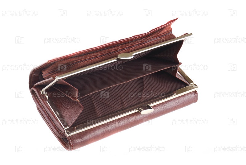 Коричневый кошелек на белом фоне
