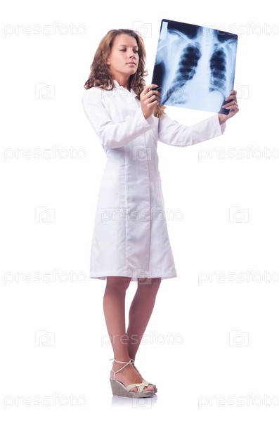 Женщина-врач с результатом рентгеновского сканирования