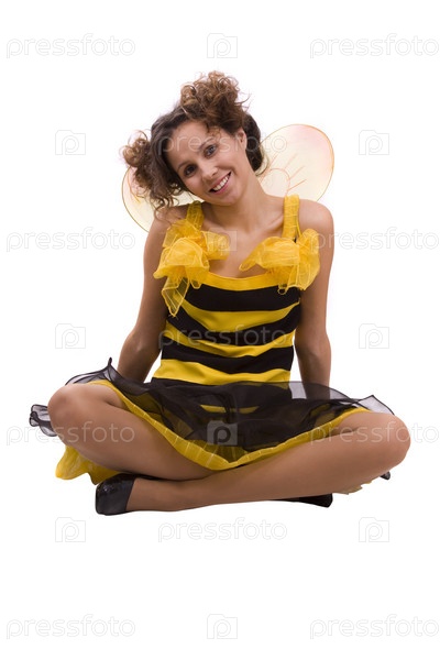 Женщина в роскошном платье на Хэллоуин сидит на полу