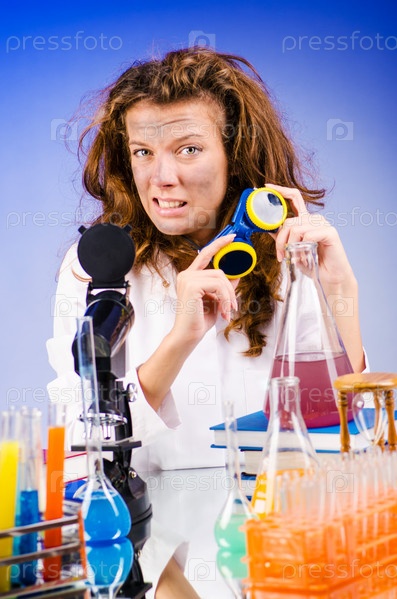 Смешная женщина-химик в лаборатории