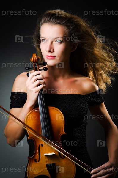 Женщина со скрипкой в темной комнате