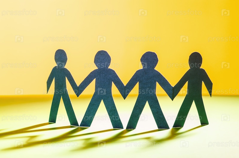 Концепция команды с бумажными человечками
