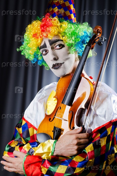 Клоун играет на скрипке