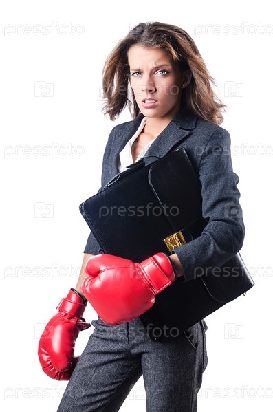 Молодая бизнес-леди в боксерских перчатках