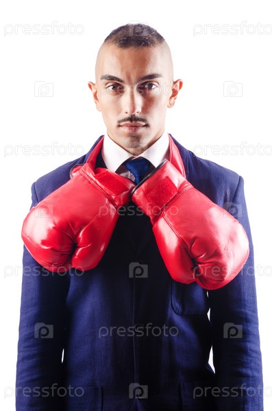 Красивый бизнесмен с боксерскими перчатками