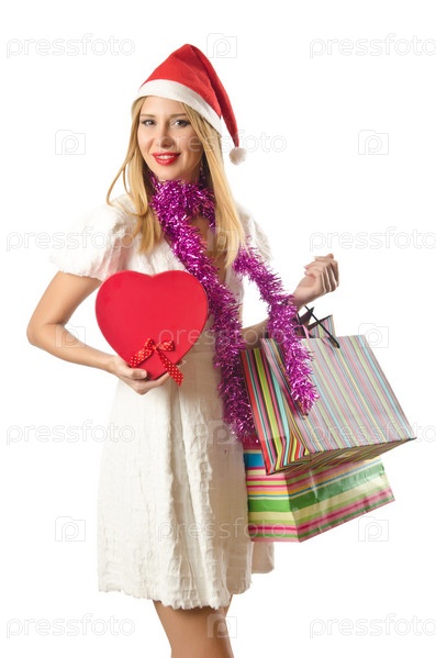 Счастливая женщина после рождественских покупок