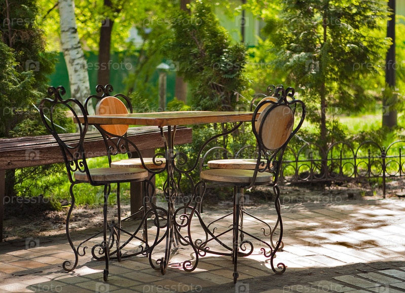 Изящный столик и стулья в уличном кафе