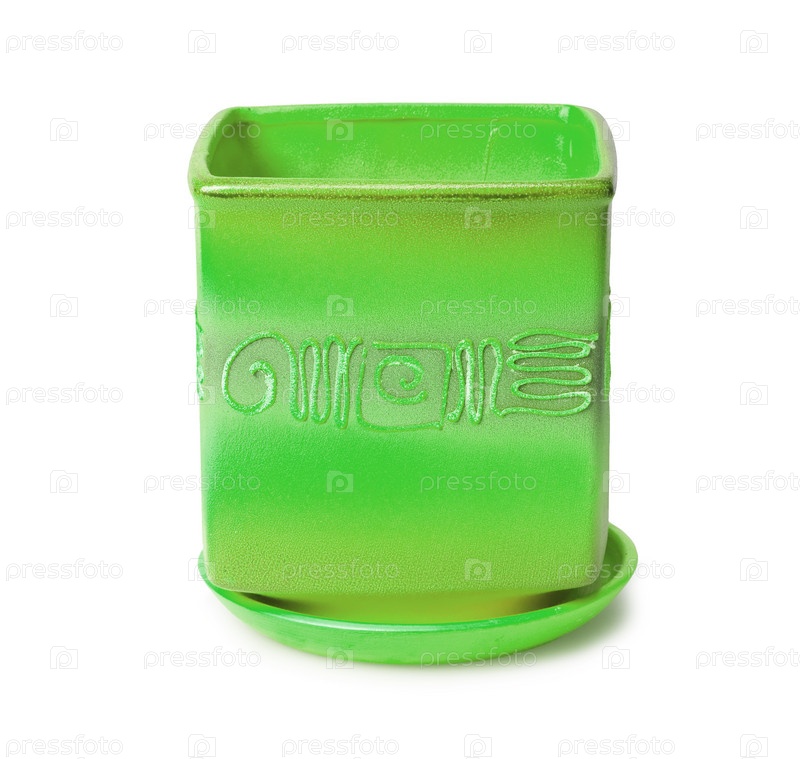 Зеленый цветочный горшок на белом фоне