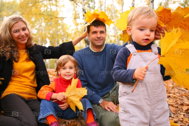 Семья в лесу осенью