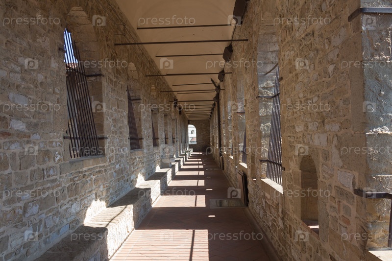 Длинный коридор к башне Палаццо Веккьо во Флоренции, Тоскана, Италия