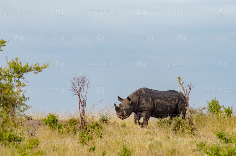 Носорог в саванне Масаи Мара парка в северной части Кении