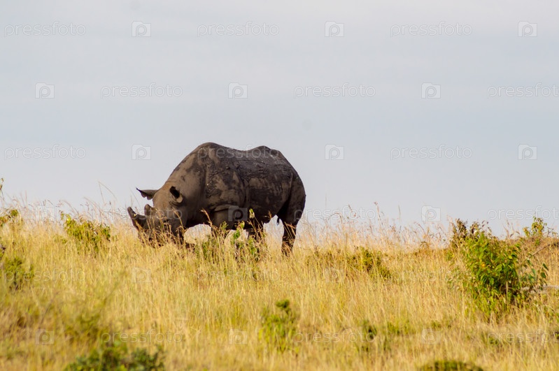Носорог в саванне Масаи Мара парка в северной части Кении