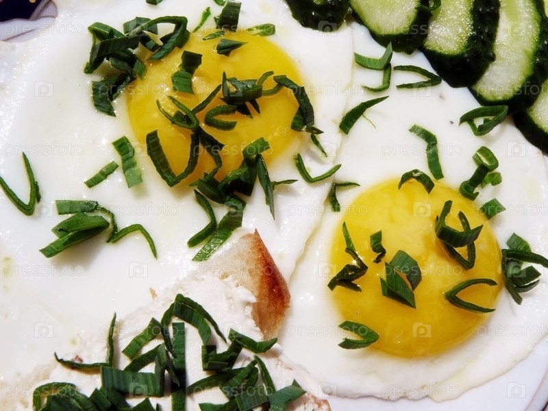Жаренные яйца с зеленью