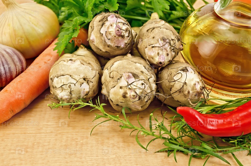 Топинамбур с овощами на доске