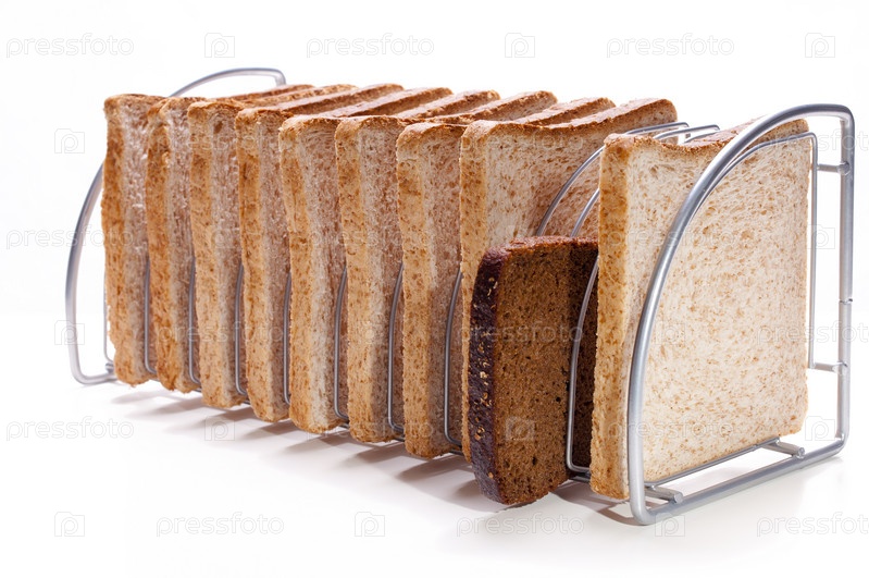 Не такой как все. Выходящий из ряда. Ломтики хлеба вставлены в подставку для компакт дисков