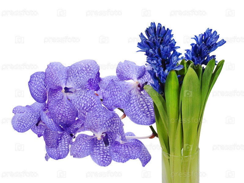 Красочный букет из гиацинтов и орхидей, изолированный на белом фоне
