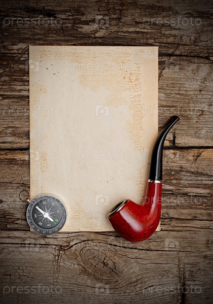 Компас и трубка на листе старой бумаги