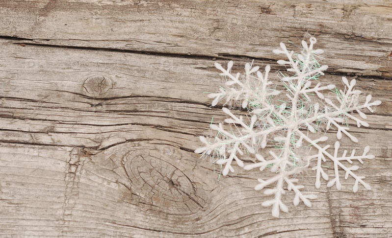 Рождественские украшения (снежинка) на деревянном фоне