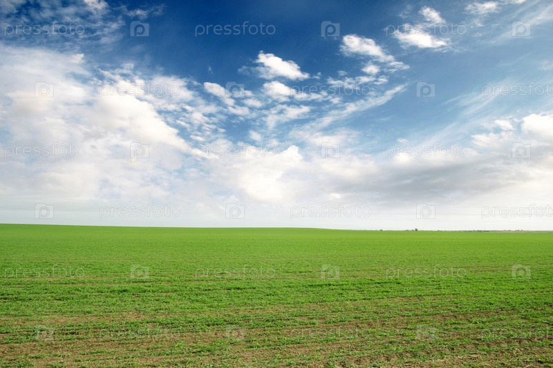 Красивая зеленая трава на поле и небесный пейзаж