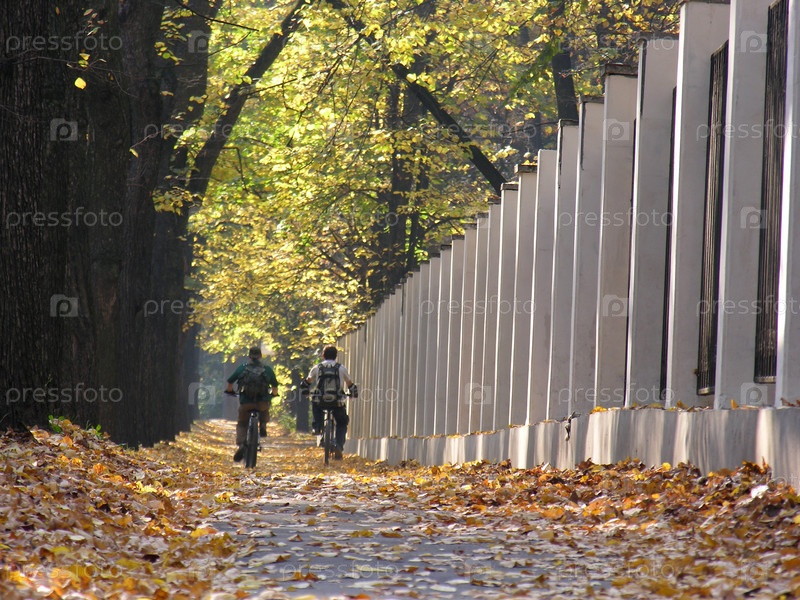 Друзья на велосипедах в осеннем лесу