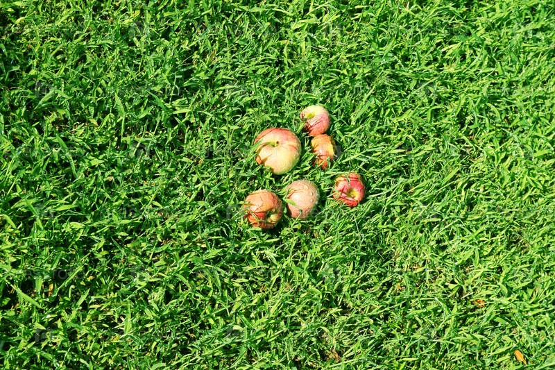 Зеленая трава и яблоки как символ урожая