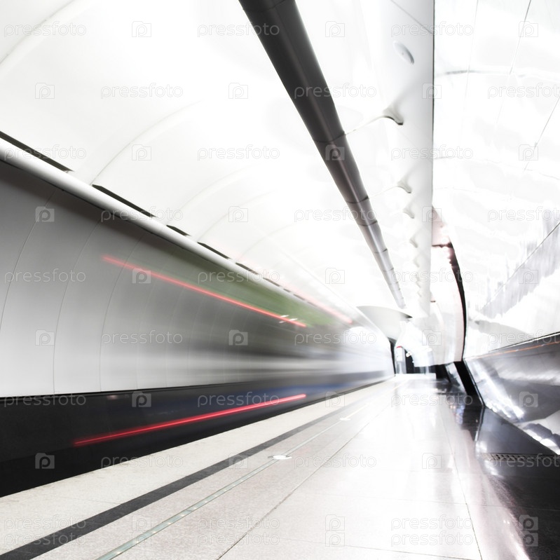 Быстрый поезд подъезжает к платформе зала метро