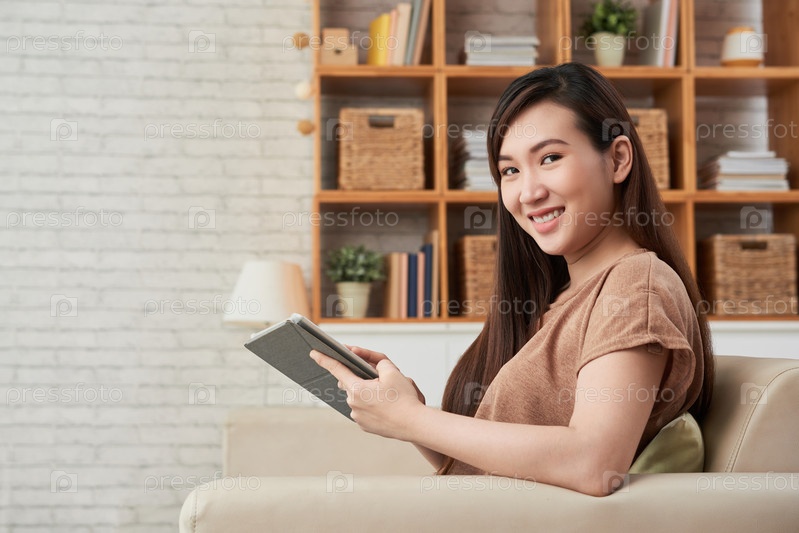 Прекрасная женщина с планшетом
