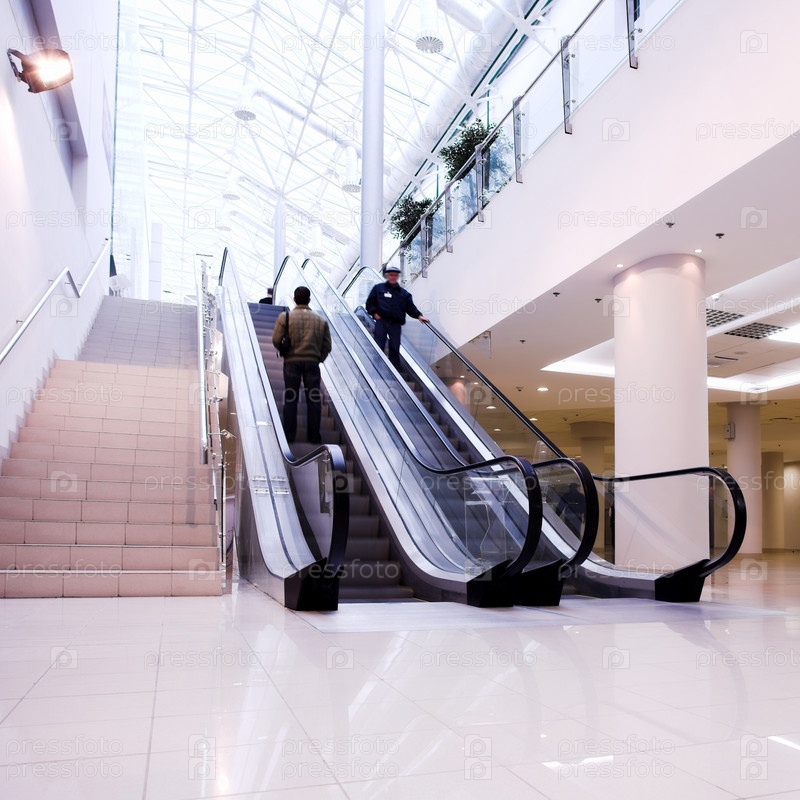 Толпа в офисном центре на эскалаторе