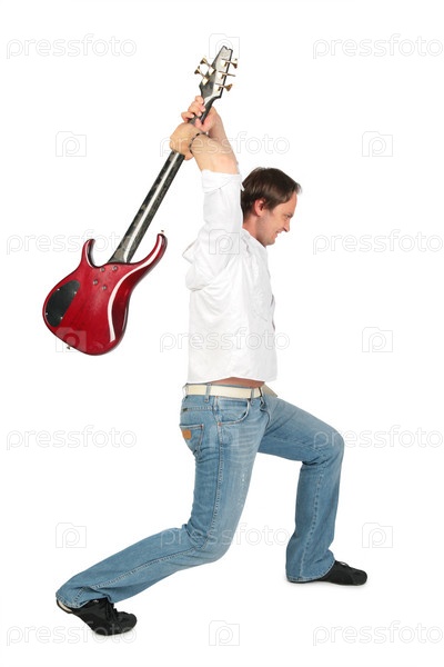 Мужчина в гневе хочет разбить гитару