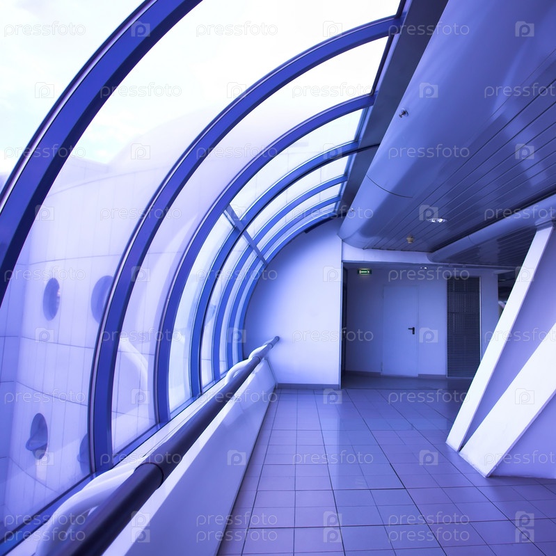 Коридор из фиолетового стекла в офисном центре