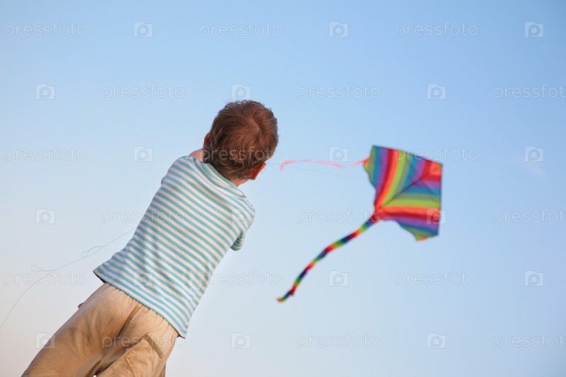 Мальчик запускает воздушного змея
