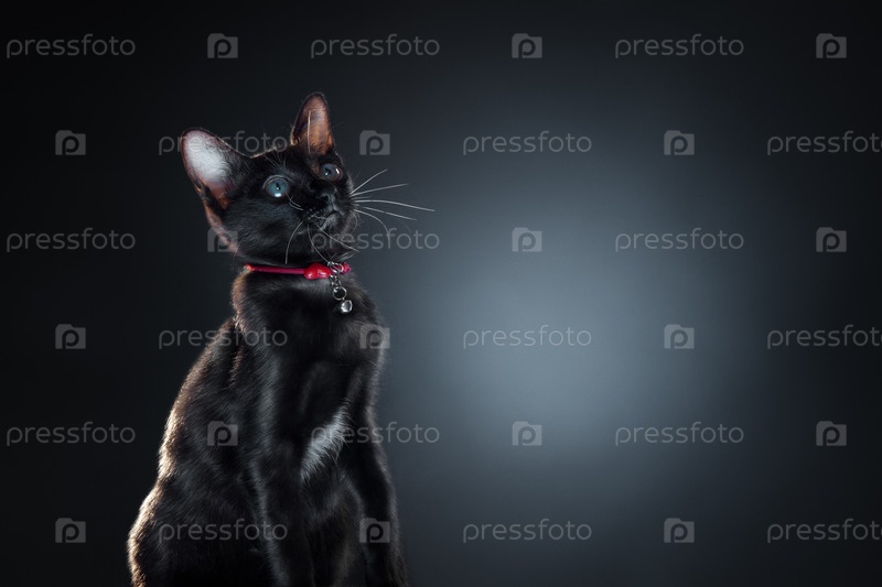 Красивый черный кот на синем фоне