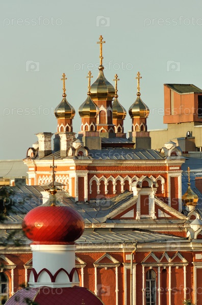 Купола церквей православного монастыря в Самаре