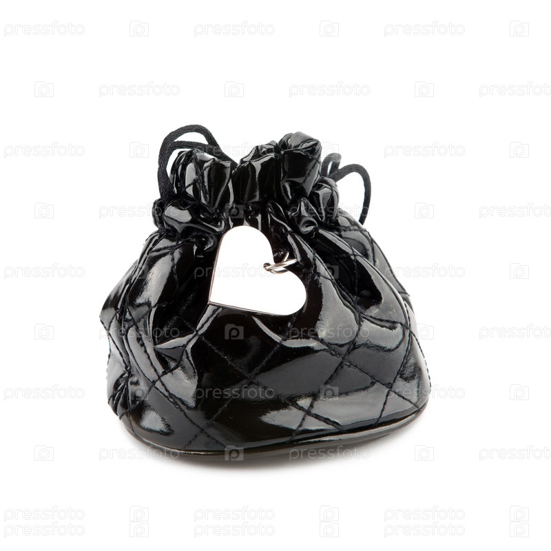 Черный мешок, изолированный на белом фоне с серебряным кулоном в виде сердца