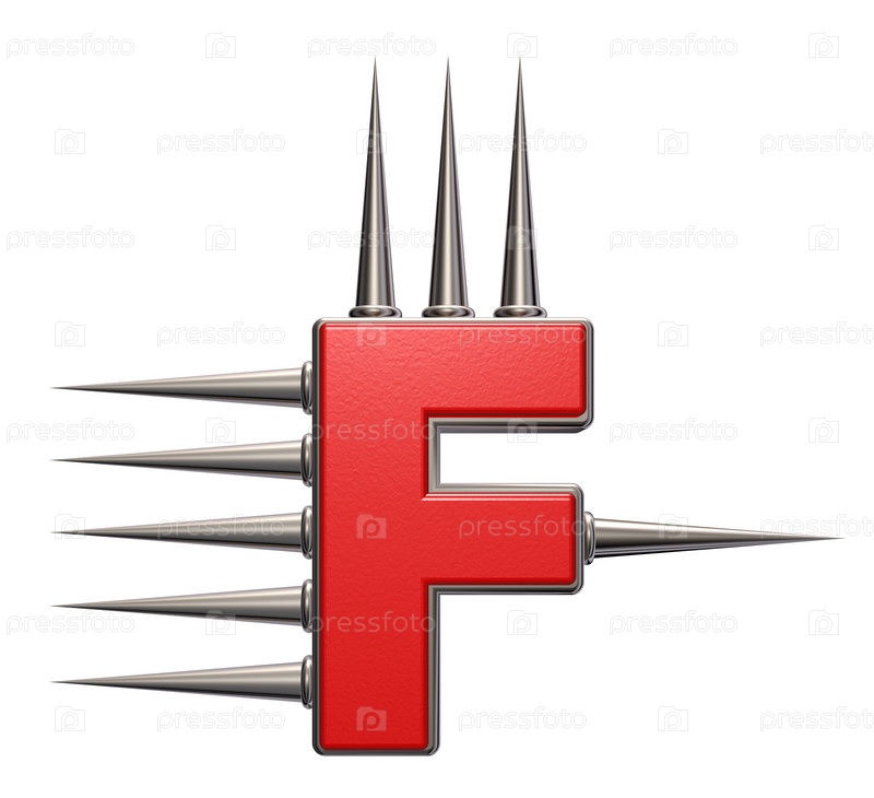 Буква F с металлическими шипами на белом фоне - 3d иллюстрация