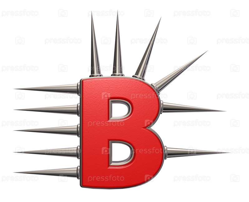 Буква В с металлическими шипами на белом фоне - 3d иллюстрация