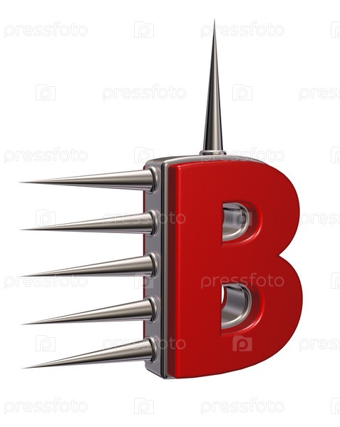 Буква В с металлическими шипами на белом фоне - 3d иллюстрация