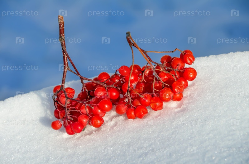 Грозди рябины на снегу